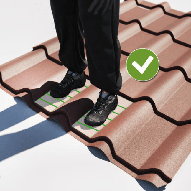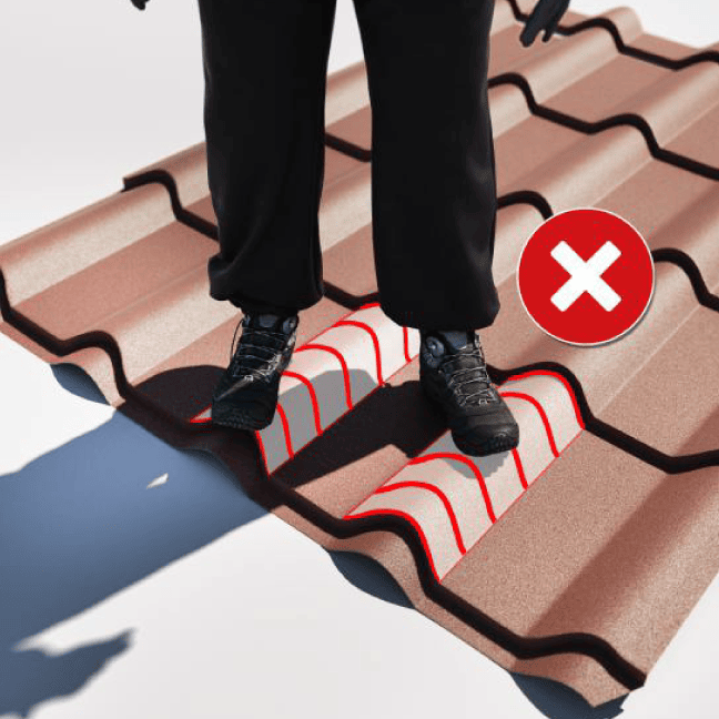 A felrakott tetőn csak a hullámok közötti részre lépj.