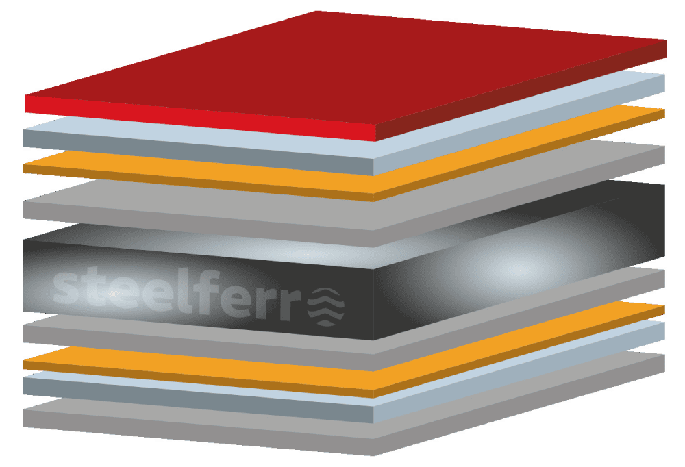 A Steelferro saját gyártású trapézlemezei többrétegű, minőségbiztosított acélból készülnek. Alapanyagainkat kizárólag megbízható, nemzetközileg is elismert európai acélgyártóktól szerezzük be, így minden termékünk megfelel a modern uniós szabványoknak.